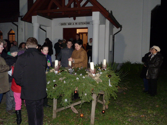 Ádventi koszorunk a templomkertben