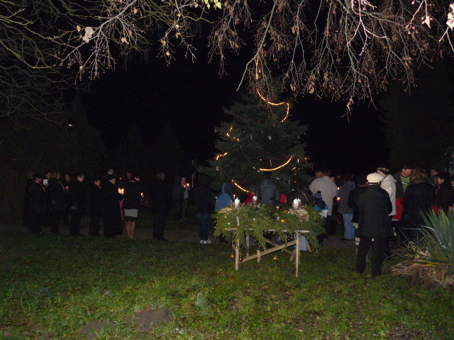 Ádventi koszorunk a templomkertben