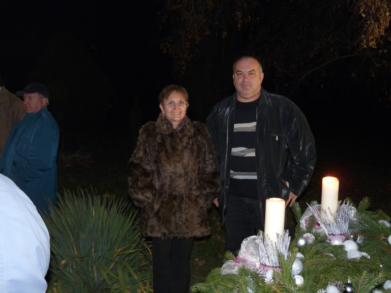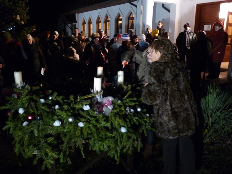 Ádventi koszorú a templomkertben
