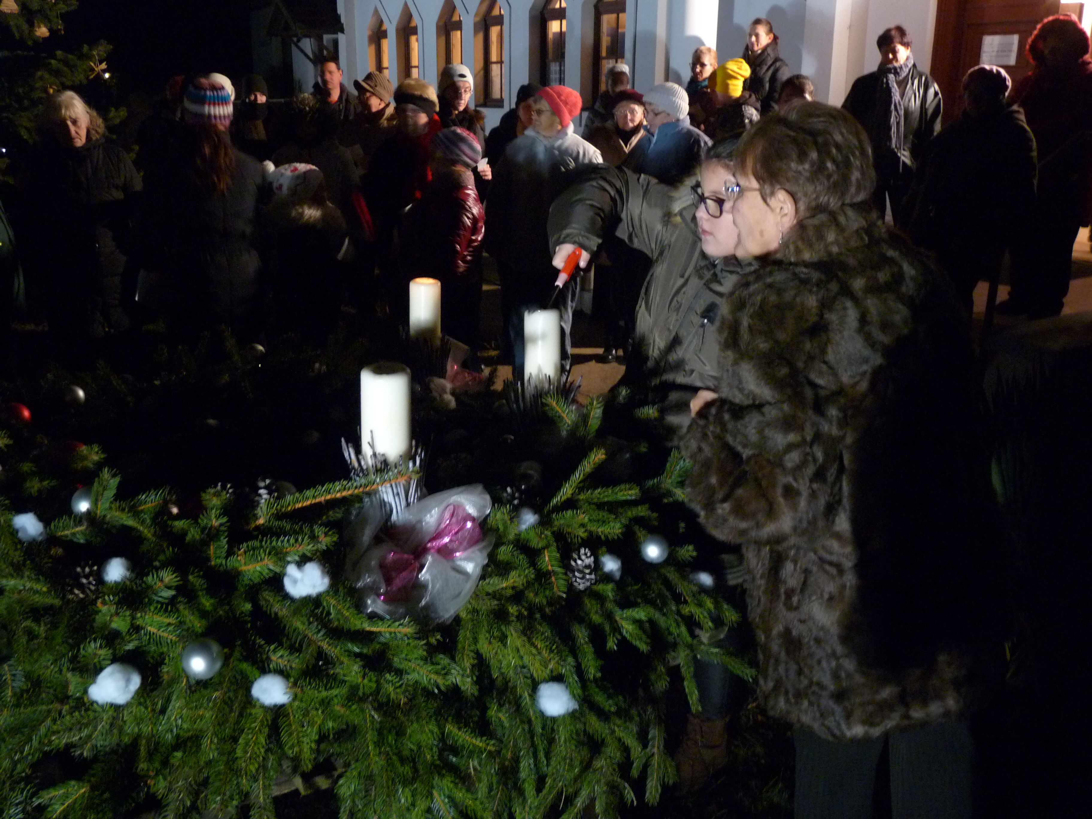 Ádventi koszorú a templomkertben