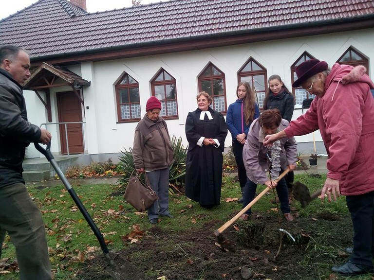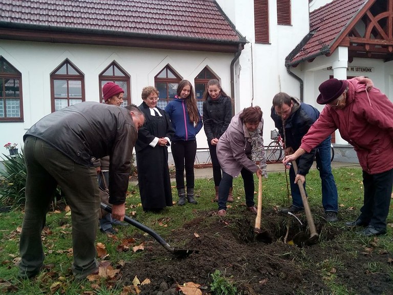 2017.10.28. Telekgerendás: almafa ültetés 11óra 30 perc templomkert