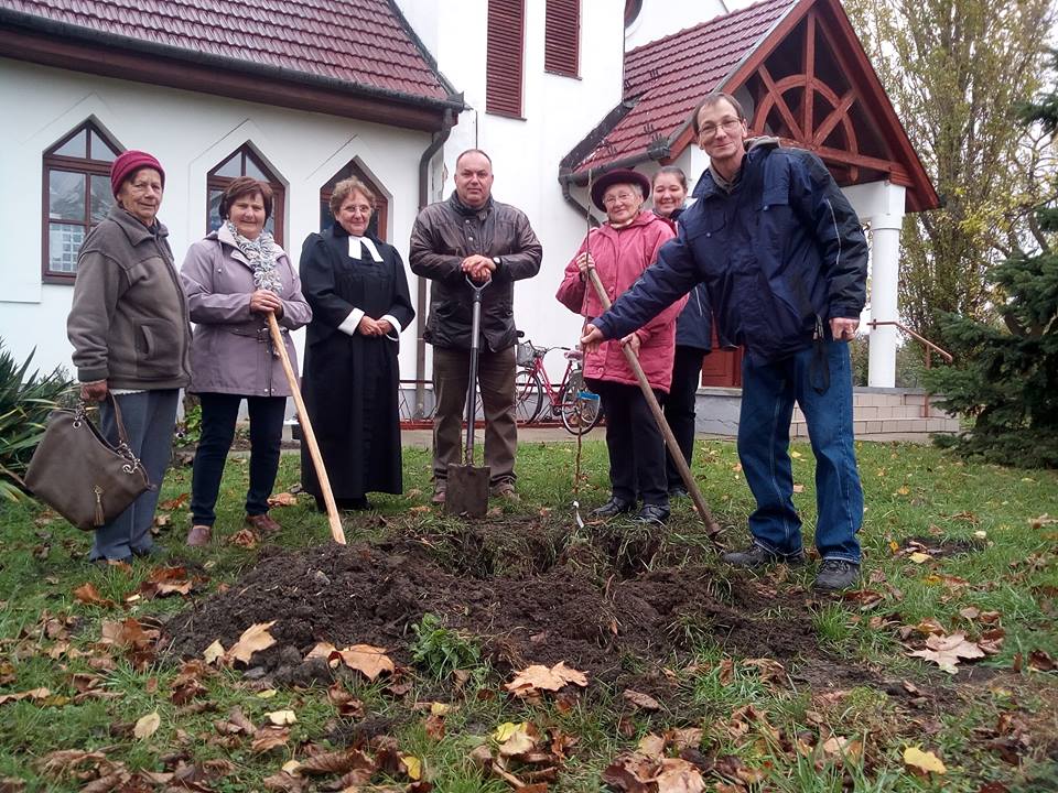 2017.10.28. Telekgerendás: almafa ültetés 11óra 30 perc templomkert