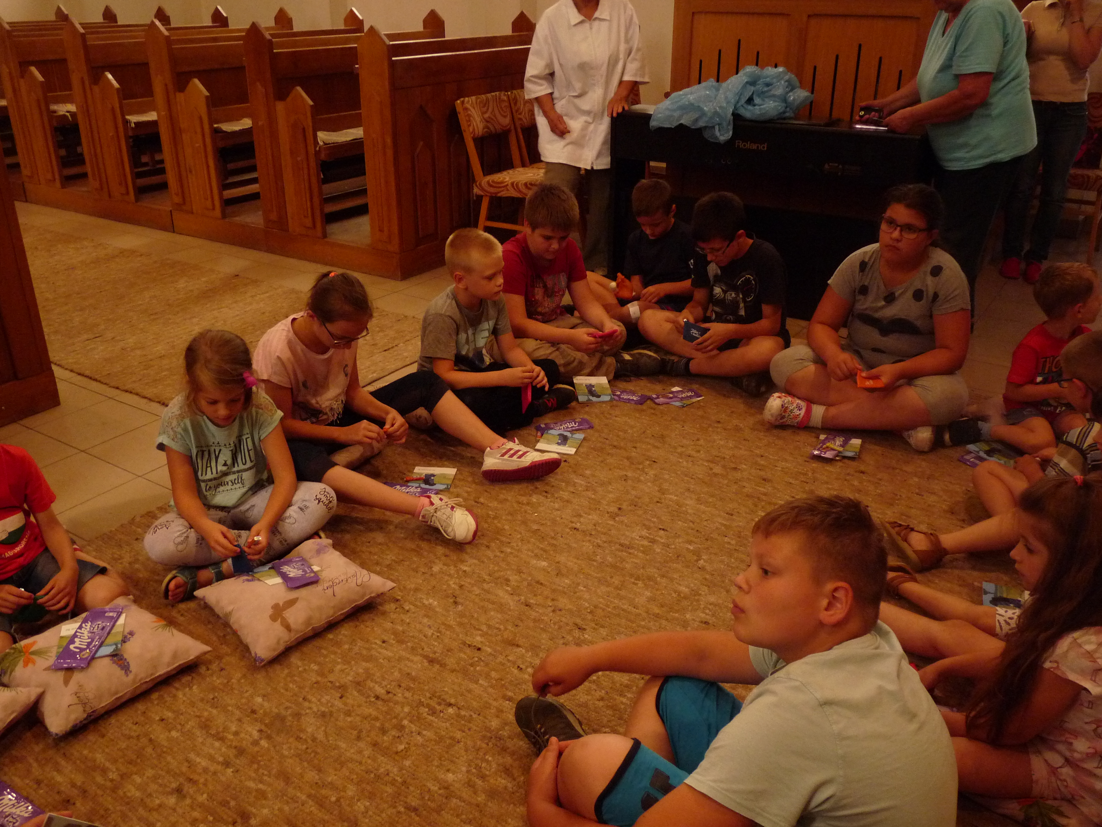 Ebéd előtti szabadfoglalkozás a templomkertben